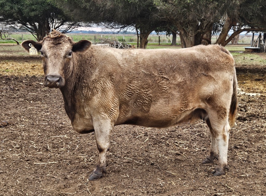 Murray Grey: Origin: Australia Weight: Male: 780-860kg; Female: 500-680kg Coat: Grey, silver, dun Horn status: Polled