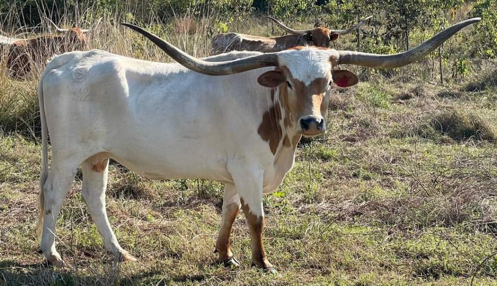 Texas Longhorn: Origin: America Weight: Male: 900kg; Female: 600kg Coat: red, white, black, brown, speckled Horn status: horned