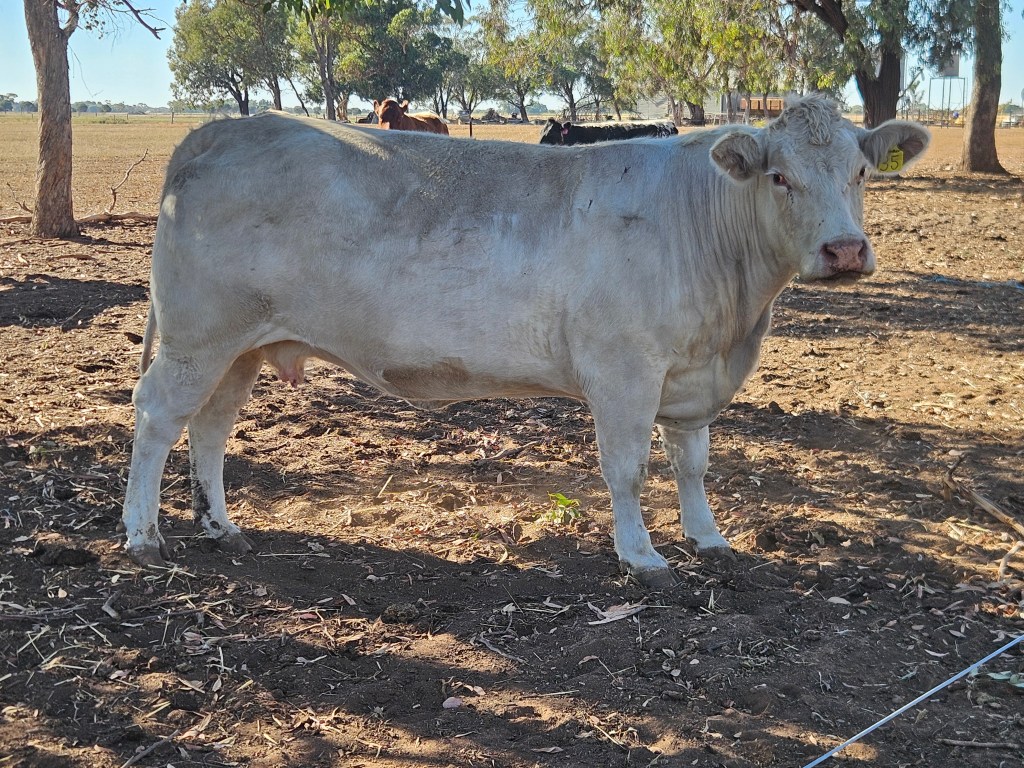 Charbray: Origin: Australia/America Weight: Male: 1000kg; Female: 800kg Coat: White through to red Horn status: horned or polled